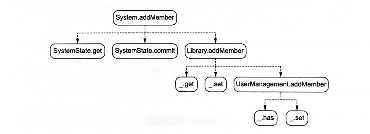 변경 함수도 마찬가지로 트리 함수로 시작한다. addMember 메서드를 테스트하기 위해 호출하는 메서드를 그리고 가장 하단의 메서드에 대한 단위 테스트로 시작한다.